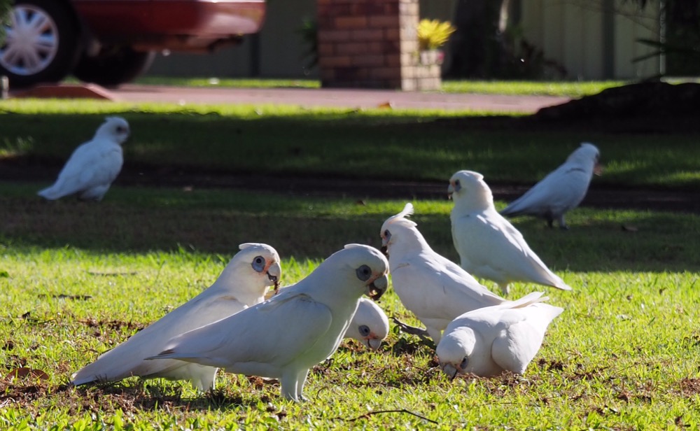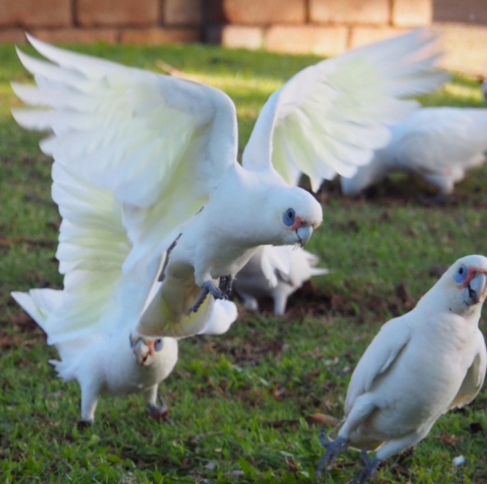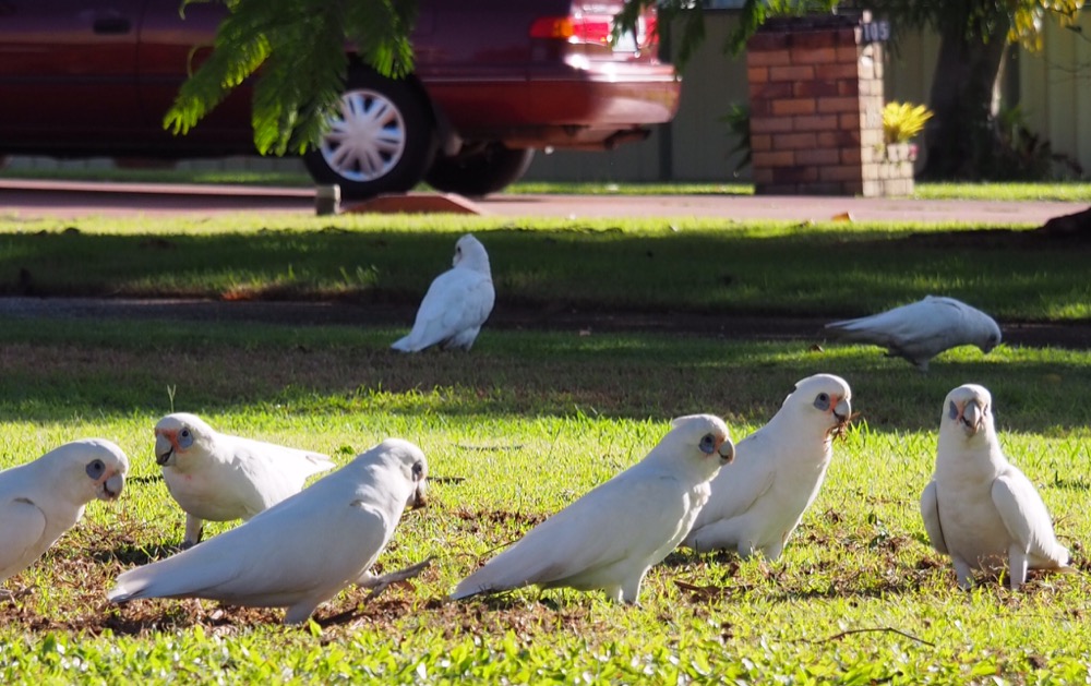 Koukni se, má milá dozadu, sedí tam papoušek kakadu - se zpívá v jedné známé písničce. Kakadu naholící - by se vsak též mohl nazývat kakadu neoblíbený - místní obyvatelé mu také řikají výstižným výrazem vandal. Kam přiletí hejno těchto papoušků, je to pohroma. Dokáží zničit nejen zahradu, ale cokoli ze dřeva a mimo verandy dokonce zlikvidují třeba i anténu. Mimo to jsou velice hluční a jejich křik nemá se zpěvem ostatních ptáků nic společného. Dokonce i mně, obdivovatelce celé ptačí říše, je tento velmi inteligentní papoušek s arogantním výrazem nesympatický.